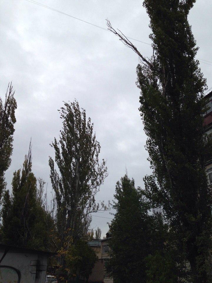 Также ветки деревьев падают, не выдержав силы ветра. Так, не далеко от детсада №38 мелитопольцы сфотографировали ветку тополя, которая упала прямо на провода.