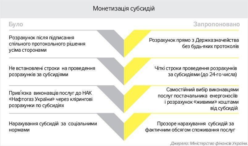 Минфин предлагает ряд изменений, одним из которых является начисление субсидий по фактическому объему потребленных услуг, а не по социальным нормам. Сейчас продолжается обсуждение этого проекта, а для того, чтобы он вступил в силу, его должно одобрить правительство. Заместитель министра финансов Сергей Марченко в своей статье на сайте Зеркало недели написал, что