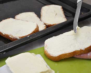 1. Намазать тонким слоем сливочного масла ломтики батона.