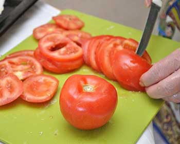 3. Помидоры помыть и порезать кружочками.