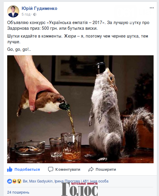 За креативность организатор конкурса Юрий Гудыменко обещал бутылку виски, либо 500 гривен.
