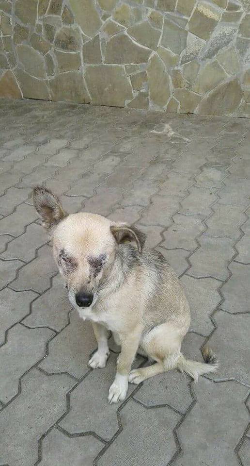 Волонтеры подыскивают дом слепой несчастной собачке.