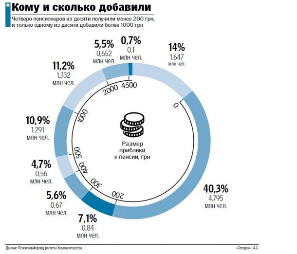 В 40% пенсионеров (почти 4,8 млн чел.), получивших минимальную прибавку (до 200 грн), вошли малооплачиваемые, о которых упомянул министр.