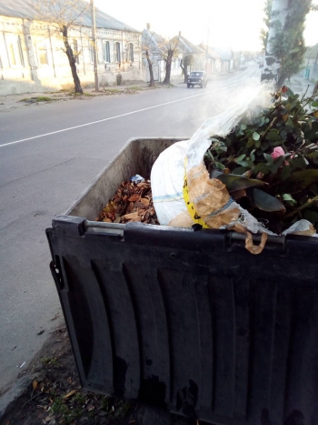 Фото автора: листья выбросили в контейнер и подожгли