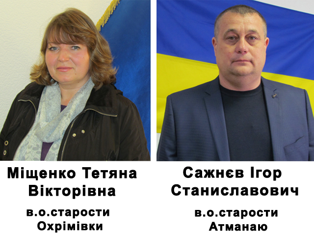 Так и.о. старосты Охримовки была назначена Татьяна Мищенко - и.о. председателя Охримовского сельского совета. И.о. старосты Атманая стал председатель Атманайского поселкового совета Игорь Сажнев.