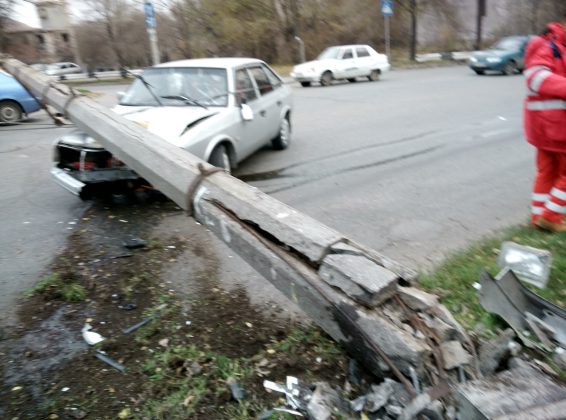 В Запорожье «Москвич» раздавила электроопора (ФОТО)