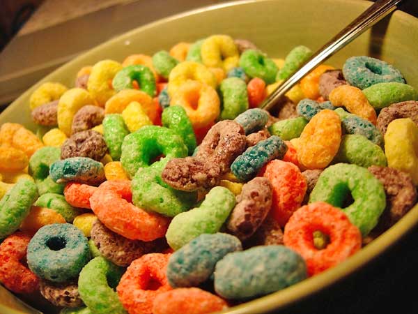 Главный минус сухих завтраков в том, что в них содержится очень много углеводов, которыми не желательно злоупотреблять. Кроме того, многие производители варят хлопья в сахарно-солевом растворе, а потом еще и поджаривают на масле. А если в обжаренные на масле подушечки добавили еще и шоколад, мед, сахар или патоку, то калорийность такого продукта будет такая же, как и у конфет. Поэтому сухие завтраки - очень калорийная еда, которая быстро усваивается.