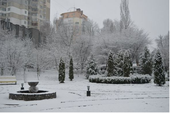 Снег с дождем начал падать в Хмельницком около семи вечера вторника, 21 ноября. Все сразу таяло и на земле оставалась лишь вода. Лишь ночью, когда стало прохладнее, пошел хлопьями снег и начал потихоньку укрывать город.