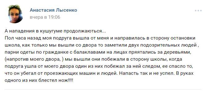 Люди не на шутку напуганы, несмотря на то, что в полицию заявления о подобных преступлениях не поступали. В пресс-службе ГУНП IPnews сообщили, что местное отделение уже проинформировано и предприняты дополнительные меры по усилению общественного порядка.