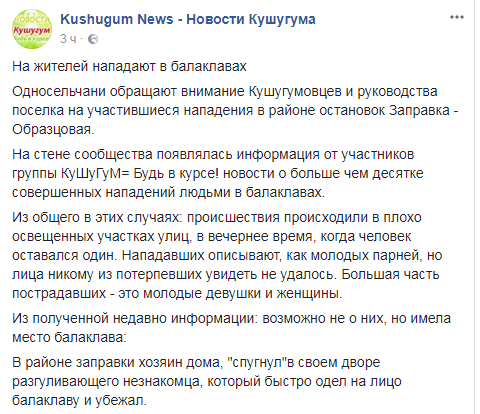 Жители пгт Кушугум сообщают в соцсети о таинственных парнях в балаклавах.