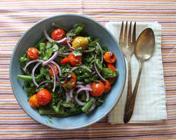 4. Смешать теплую фасоль с помидорами и заправить соусом. Салат готов.