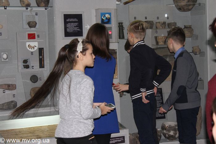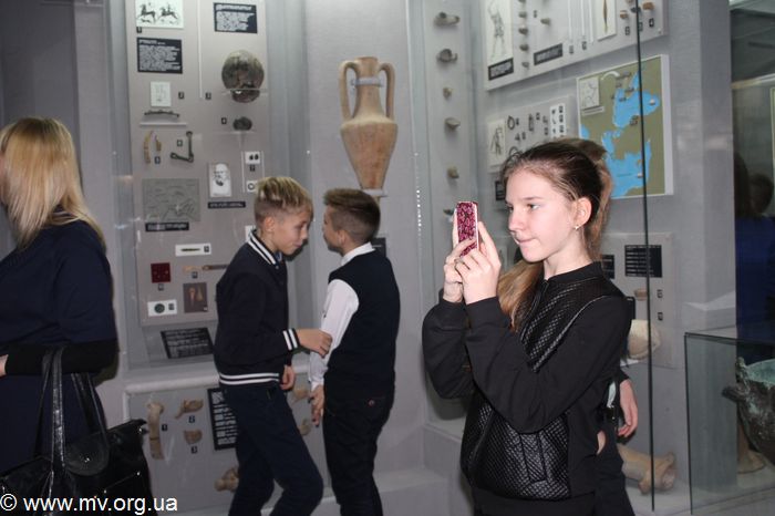 После завершения дискурса гимназисты познакомились с экспозицией выставки в археологическом зале музея, где есть стенд с информацией и наглядными иллюстрациями раскопок Мелитопольского скифского кургана.