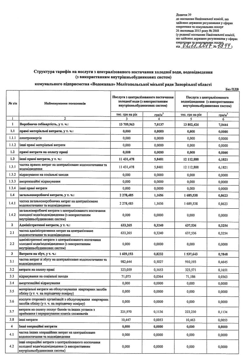 29 ноября в силу вступило одно из постановлений НКРЭКУ от 2 ноября, касающееся изменений тарифов на водоснабжение и водоотведение. Постановление касается тарифов на услуги в многоквартирном секторе Мелитополя. Тарифы введены в действие с сегодняшнего дня.
