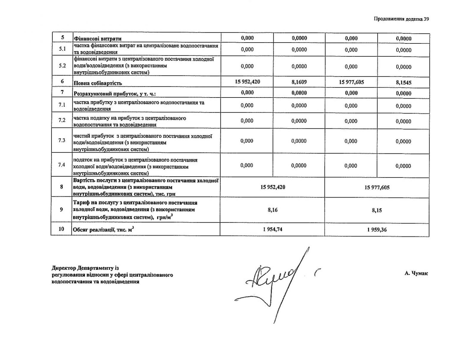 Теперь тариф на водоснабжение (с использованием внутридомовых систем) составляет 8,16 грн. м. куб без НДС и 9,792 грн. м. куб. с НДС. Тариф на водоотведение несколько ниже: 8,15 грн. м. куб без НДС и 9.78 грн. м. куб. с НДС.
