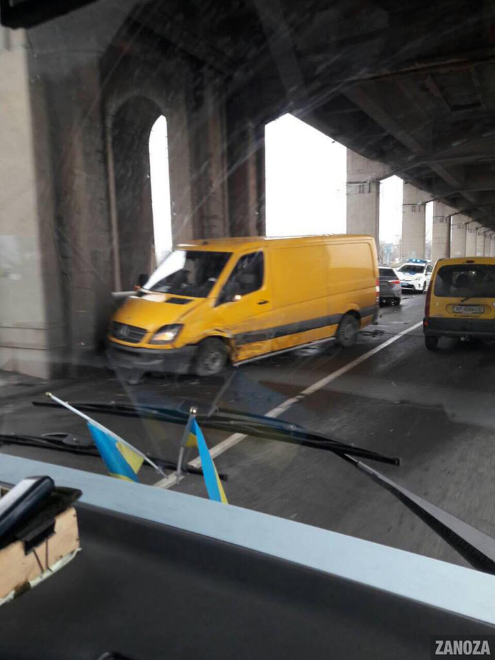 Микроавтобус с легковушкой влетели в опоры моста Преображенского (Фото)