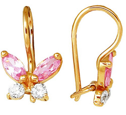 • детские сережки из золота с английским замком. Такая модель также распространена среди маленьких модниц, и если грамотно подойти к выбору размера изделия, то вы поймете всю прелесть таких сережек. Дело в том, что их трудно потерять - английский замочек исключает такую возможность. Соответственно ребенок самостоятельно не сможет расстегнуть их. Кроме того, малышке не придется переживать психологическую травму по поводу того, что она потеряла свои любимые украшения;