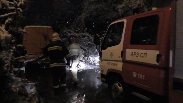 В течение выходных дней после обильных снегопадов в Черновцах и по области спасатели пять раз убирали поваленные деревья с проезжей части дороги. Кроме этого, в поселке Путило спасатели отбуксировали грузовой автомобиль, водитель которого не мог самостоятельно выехать на дорожном подъеме.