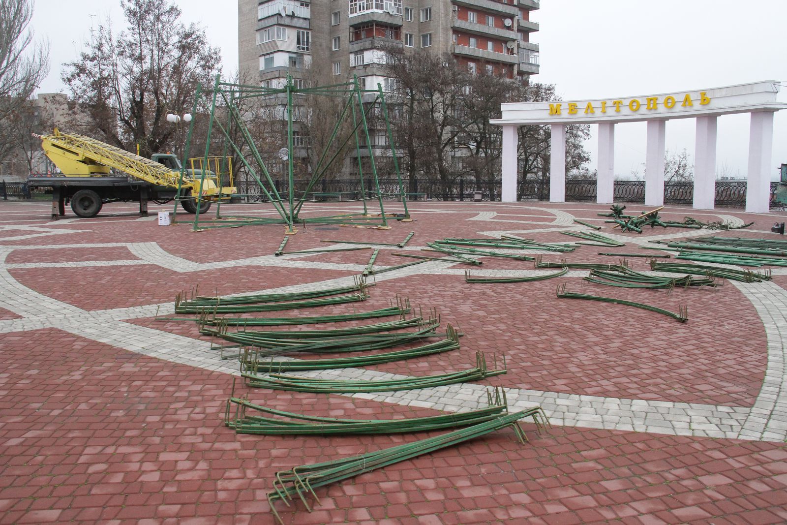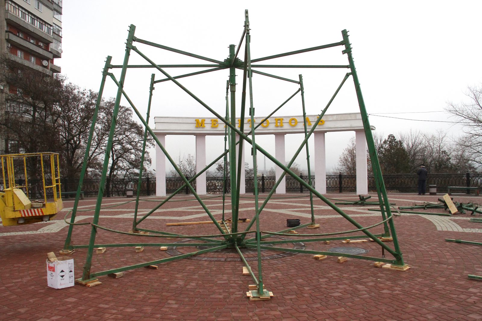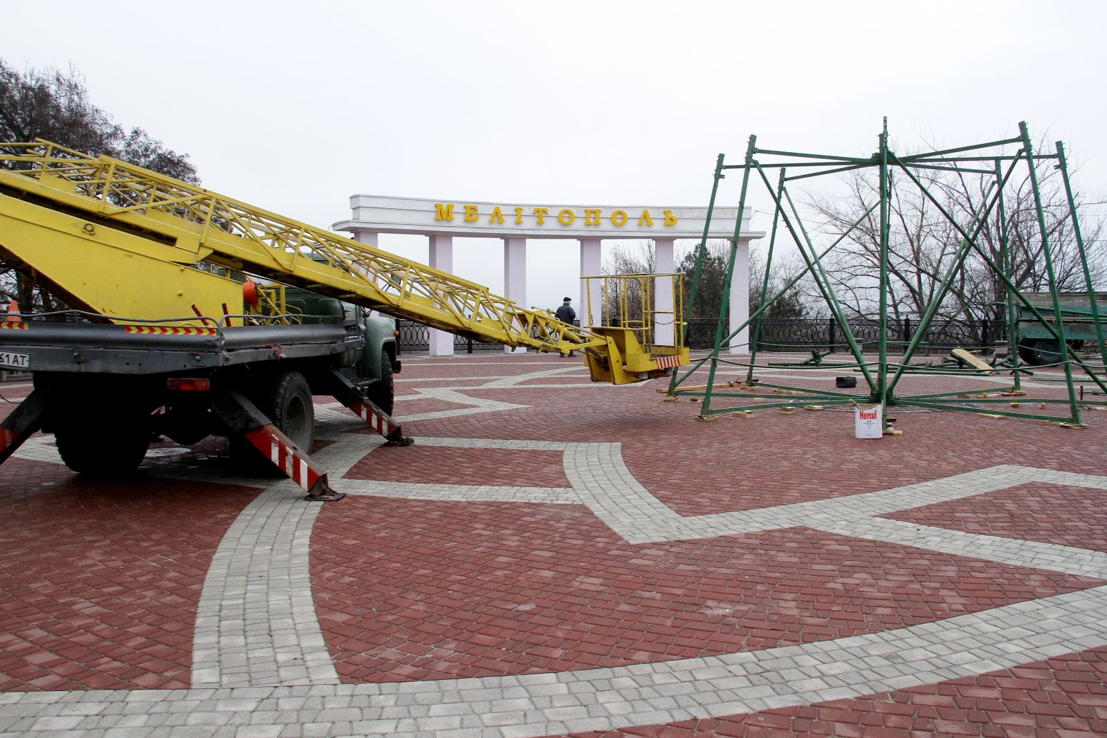 В Мелитополе устанавливают главную новогоднюю елку (добавлено фото)