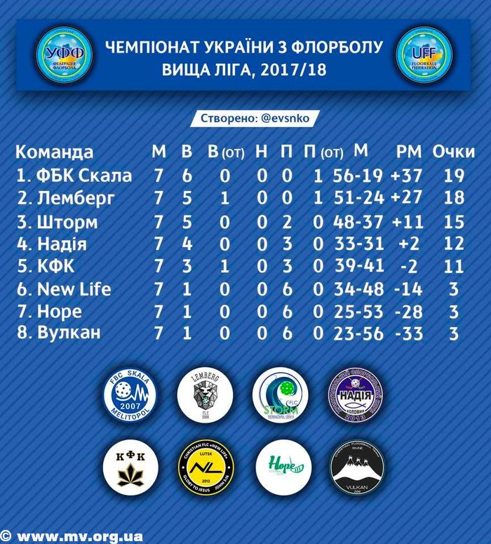 Таким образом, после двух туров и семи сыгранных матчей мелитопольские флорболисты уходят на зимний перерыв в статусе "зимних чемпионов". Но защита чемпионского титула продолжается: следующий, третий тур Высшей лиги будет сыгран в Луцке 26-28 января.