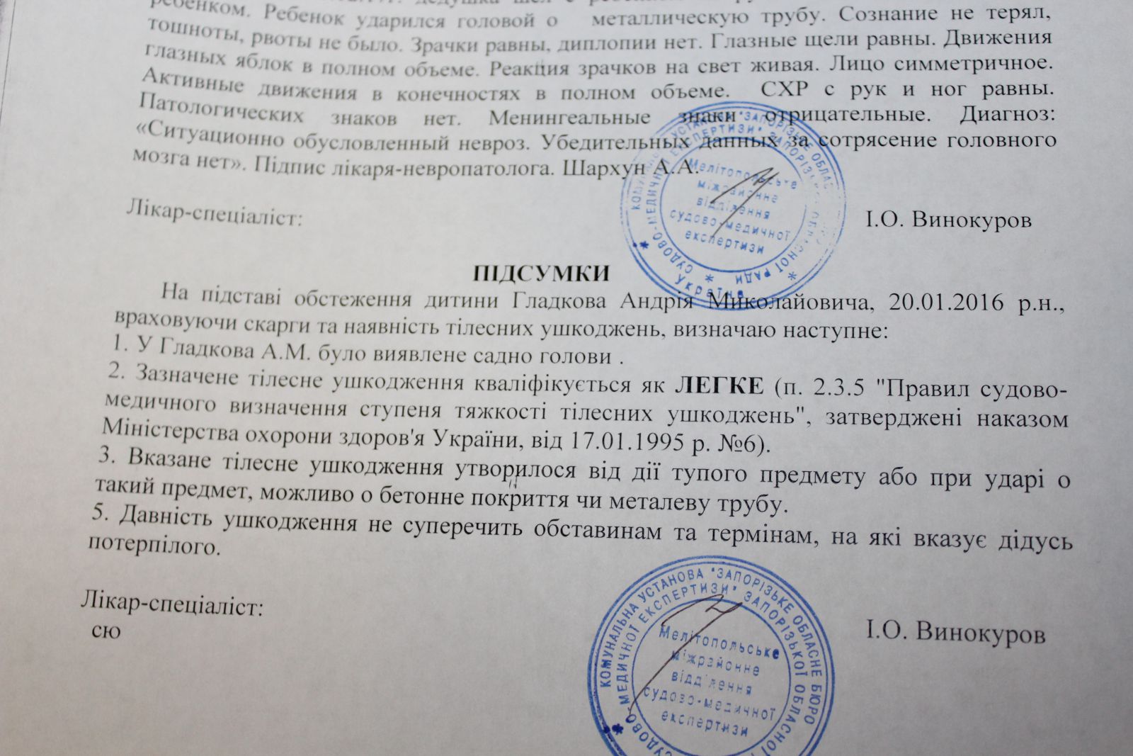Ее ребенок и отец получили легкие телесные повреждения, о чем есть соответствующие медицинские заключения (см. фото).