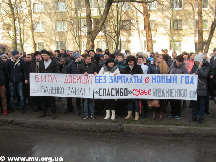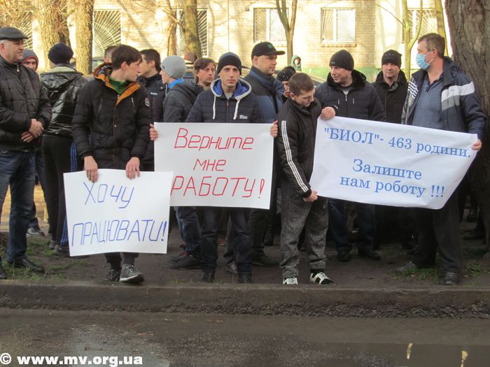 Люди держали в руках плакаты «Не убивайте предприятие, которое кормит мою семью», «БИОЛ» 463 родини Залиште нам роботу!!!», «Без зарплаты в Новый год, спасибо судье Иваненко Е.В.» и другие. Здание суда охраняли сотрудники полиции, однако протестующие вели себя мирно.