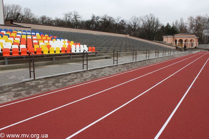 Напомним, на стадионе выполнен капитальный ремонт беговых дорожек, одной части трибун (сидения закуплены и находятся на ответственном хранении, установят их весной). Реконструкция происходит за счет средств Государственного Фонда регионального развития. Общая стоимость работ по проекту составляет 12,5 млн. грн. Они будут закончены в 2018 году. После реконструкции стадион сможет принять 3 тысячи зрителей.