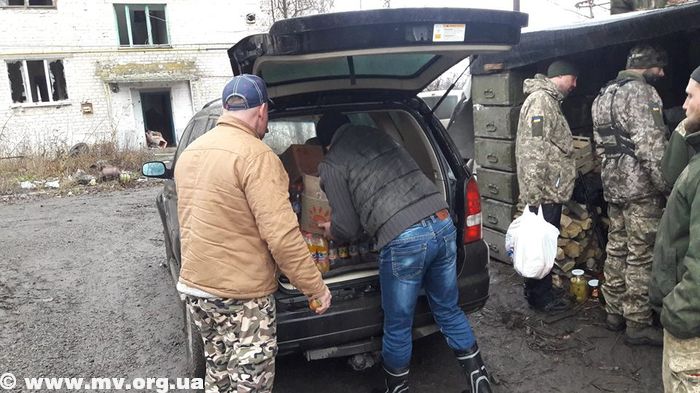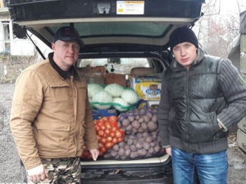 "Друзі! Як і обіцяв, надаю звіт нашої поїздки 17 грудня до передової, яка розташована в селищі Піски, де стоять на стражі нашого миру та спокою захисники. Поїздка була не простою - прийшлось дуже рано підніматися, всю дорогу був то дощ, то мряка та бездоріжжя. В Запоріжжі ми приєдналися до наших друзів – волонтерів Любові Леонової та Олександри Шевельової, які майже декілька разів на місяць (протягом трьох років) на бусі надають допомогу нашим військовим. Коли ми під’їзжали до селища Піски, дуже здивувало те, що багато людей, в тому числі і дітей, живе в селі Первомайське, яке розташоване майже поруч з передовою. Піски зовсім спустошене, зруйноване та непридатне для мирного населення селище. Наші захисники, хлопці та дівчата, були щиро раді нашому приїзду, вони були дуже вдячні за те, що волонтери їх не забувають. З деякими представниками нашого Благодійного фонду «Агапе Україна», Дмитром Ткаченко та військовим капеланом Олександром Коноваловим ми привітали їх з наступаючими святами та надали їм нашу допомогу у вигляді різноманітних продуктів харчування, засобів гігієни та питної солодкої води від ТМ «Мірненська». Після привітань та роздачи подарунків, під невеликим дощем, ми були запрошені відвідувати разом з ними гарної ухи та солдатської каші, яку ми з’їли з задоволенням. Після гарної насущної їжі, військовий капелан Олександр Коновалов поділився духовною їжею - нагадав бійцям про Небесного Батька, який їх створив, любить, захищає, та бажає спілкування з ними за допомогою Євангелія. Бійцям були також роздані кишенькові Нові Заповіти, щоб мати завжди їх під рукою.