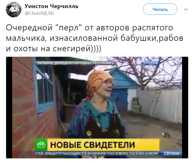 "Очередной "перл" от авторов распятого мальчика, изнасилованной бабушки, рабов и охоты на снегирей))))";