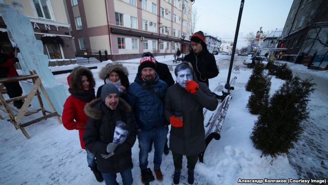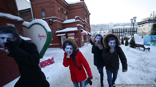В центре Томска вчера, 24 декабря, группа людей устроила акцию в масках с лицом Михаила Саакашвили.