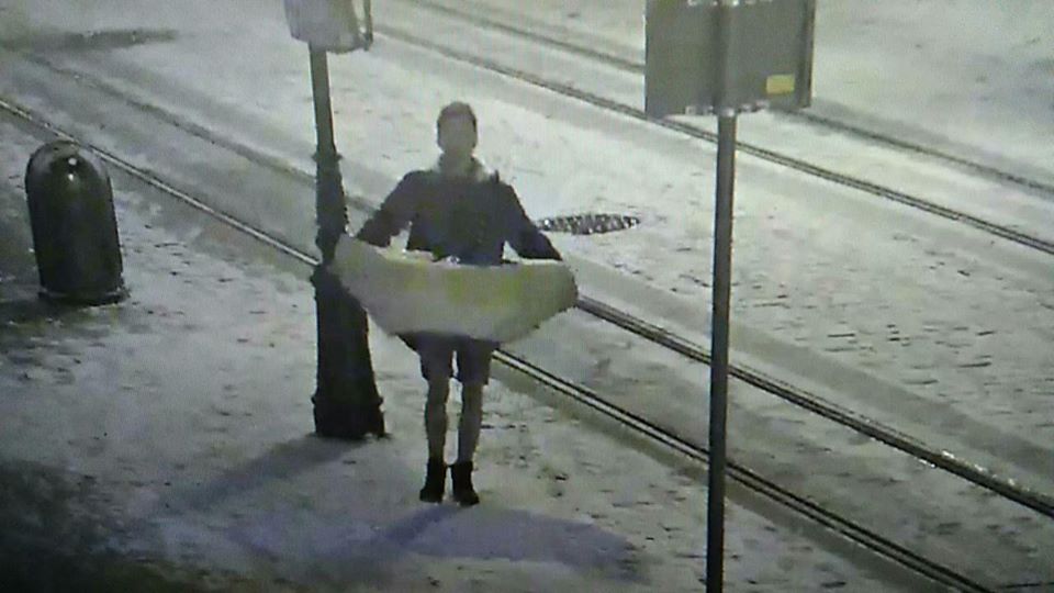 Камера видеонаблюдения сняла действия мужчины: он нес в руках колыбель с Иисусом до подъезда дома на площади Рынок.