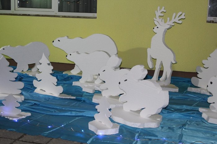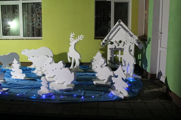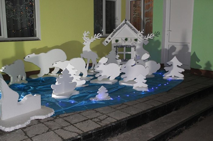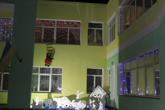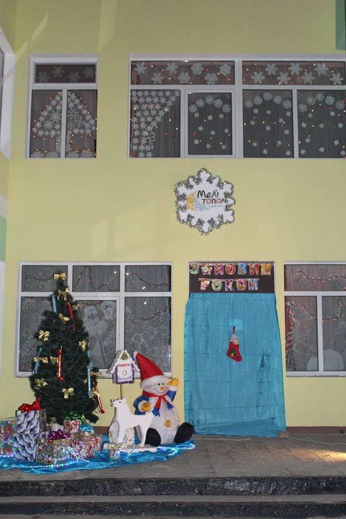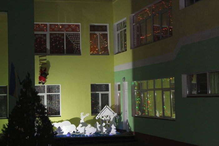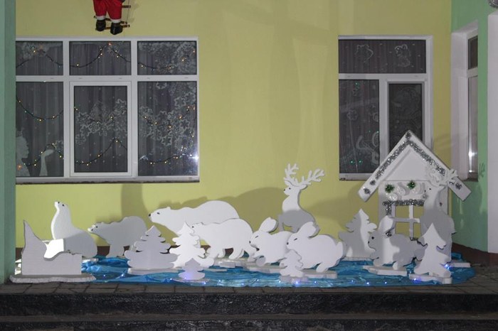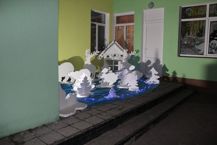 Коллектив детсада решил принять участие в акции "Мелітополь новорічний" на лучшее оформление фасада. Воспитатели придумали инсталляцию, вырезали зверушек из пенопласта. Чтобы обеспечить украшение гирляндами, обратились за помощью к родителям и коллегам. И вот получилась такая красота.