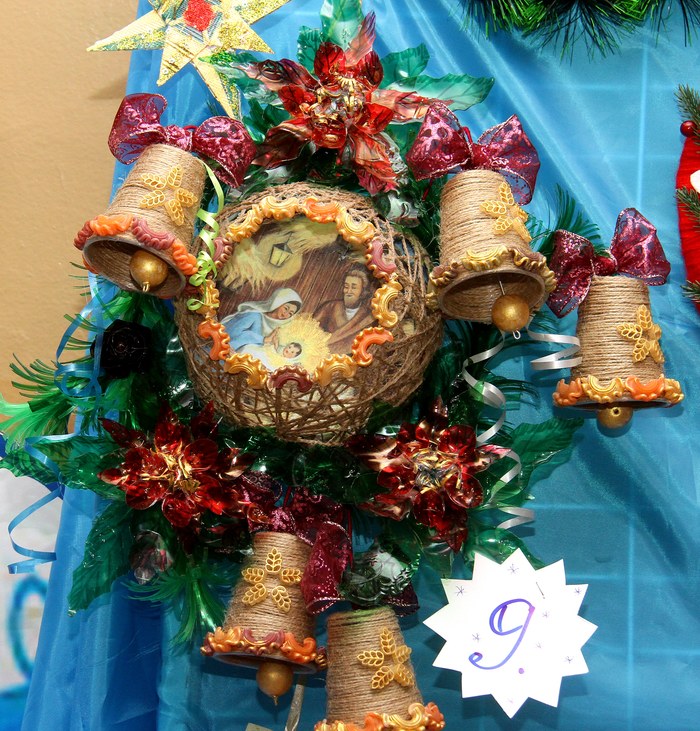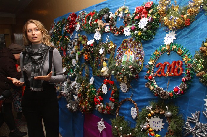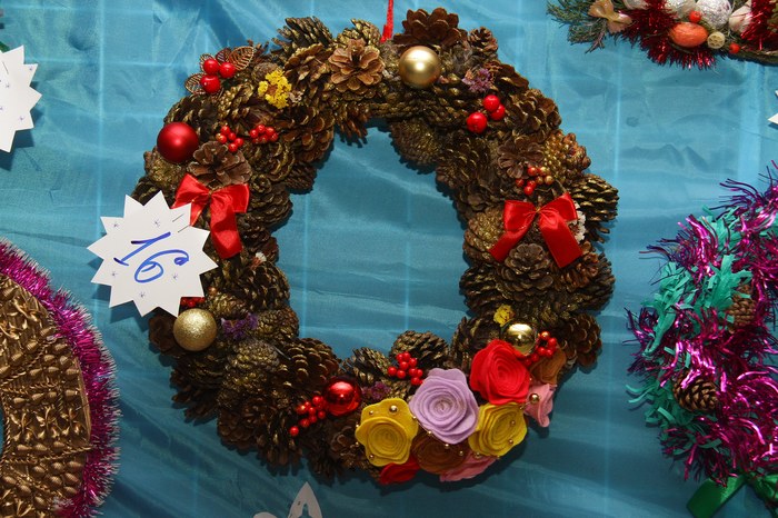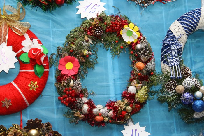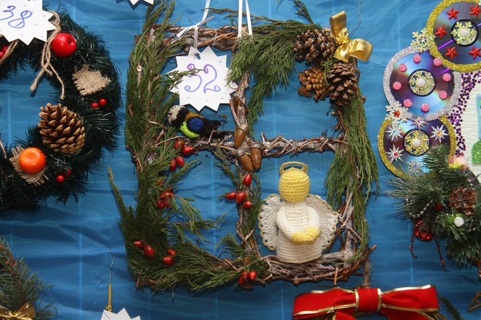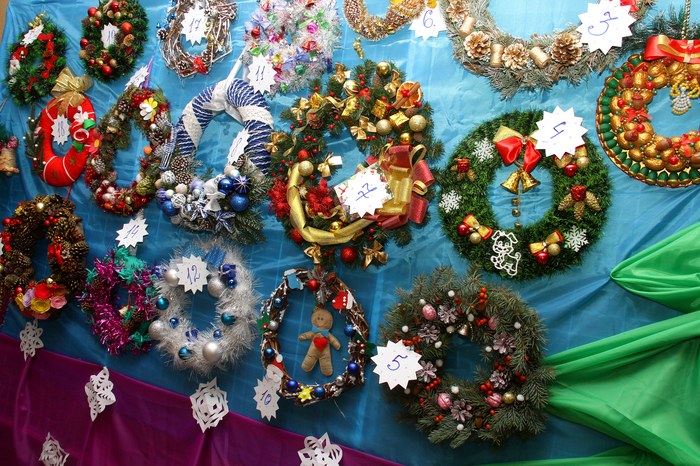 «Этот конкурс проходит уже второй год подряд, но в этом году количество участников увеличилось с 25 до 62. Знаете, две последние работы пришли, можно сказать, в последний момент. В этом году особенно нам понравились коллективные работы: от МГПУ им.Б.Хмельницкого, от Краеведческого музея, от школ, детсадов или совместные работы, выполненные папой и сыном или дочкой и мамой. В этом году, кроме натуральных материалов, в изготовлении рождественских веночков используются такие материалы, как пластик, компакт-диски, макароны, одноразовые стаканчики, нитка».