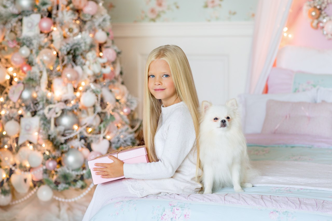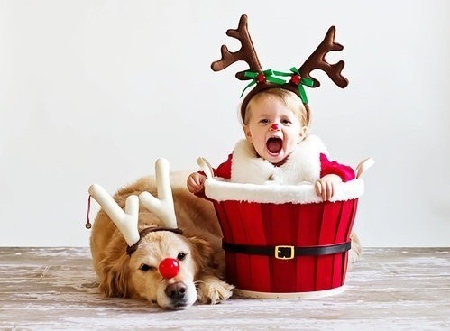 • С домашним животным, на котором веселый ободок, например, оленьи рожки. Дети всегда радуются и забываются, играя со своими питомцами, фотографии получаются живыми и эмоциональными.