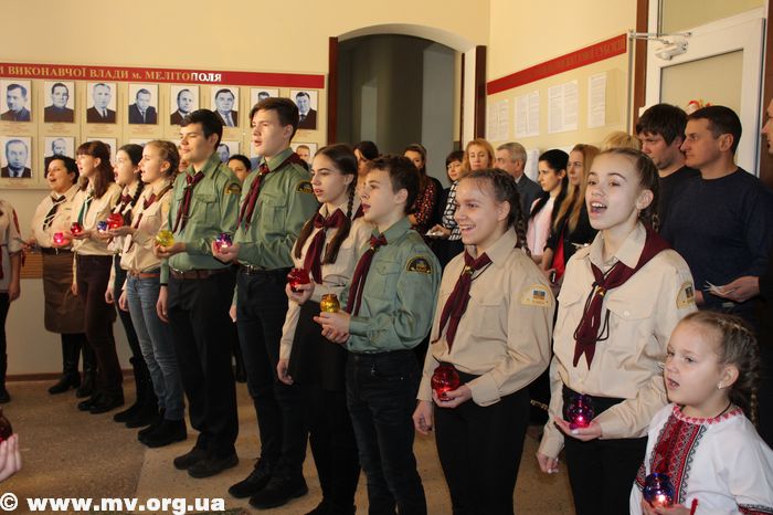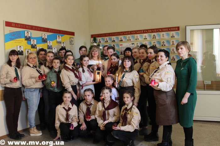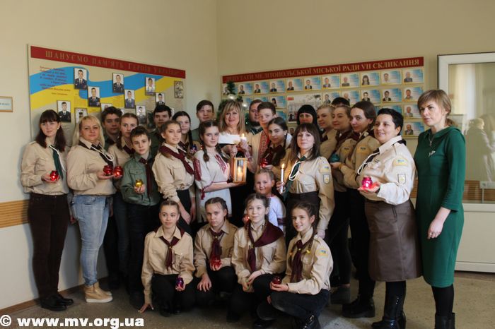 Сегодня частичка Вифлеемского огня перекочевала в Мелитопольский городской совет. Священное пламя туда принесли члены Национальной скаутской организации «Пласт – Станица Мелитополь».