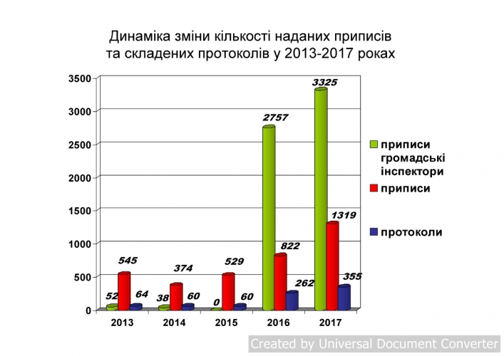 Значительно увеличились и показатели общественных инспекторов. В 2013 году они выписали 52 предписания, в 2016 г. – 2757 предписаний. А в 2017 году общественные инспектораы провели 1216 проверок, выписали 3327 предписаний и составили один протокол.