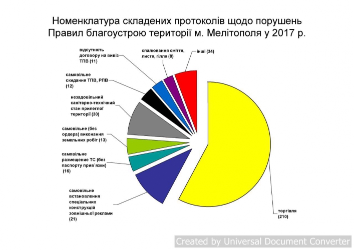 В этом году большинство протоколов (210) было составлено за стихийную торговлю, 30 протоколов выписано гражданам за ненадлежащие содержание прилегающей к частным домам территории, 21 протокол составлен за самовольное размещение рекламных конструкций. Остальные протоколы выписаны по другим видам нарушений.