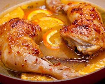 4. Приготовить соус: с двух апельсинов снять цедру и выжать сок. Сахар немного развести водой и варить на слабом огне до полного растворения. Влить яблочный уксус, добавить молотый перец. Варить, помешивая, до загустения. Добавить апельсиновый сок с цедрой. Проварить в течение 5 минут.