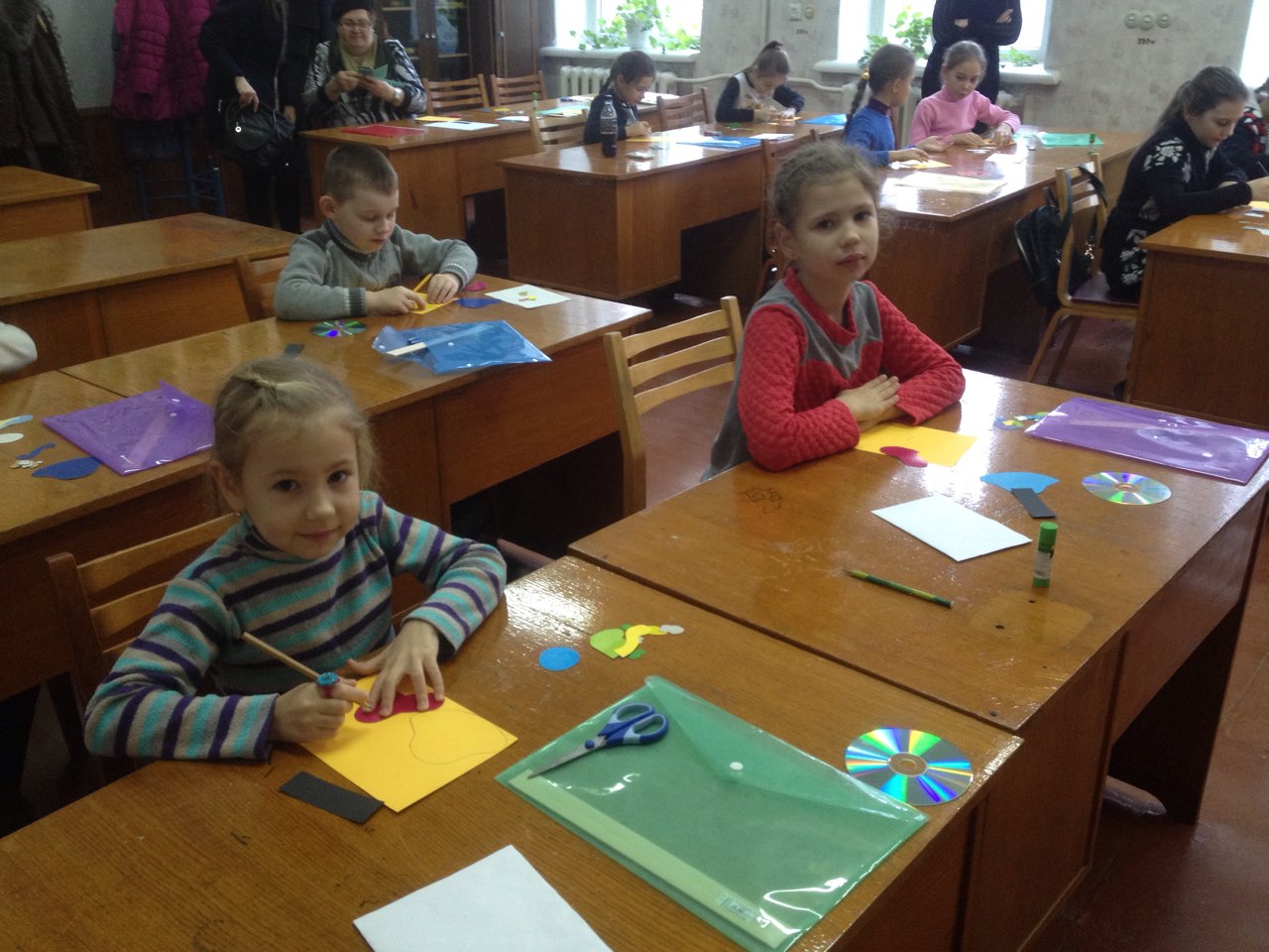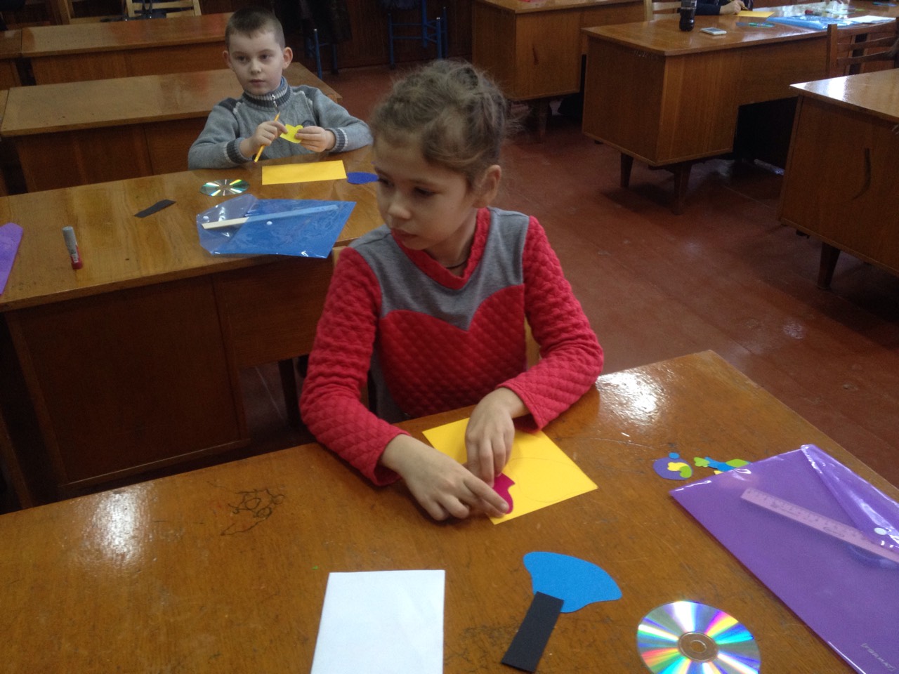 На станции юных техников мастерили собачек из старых дисков