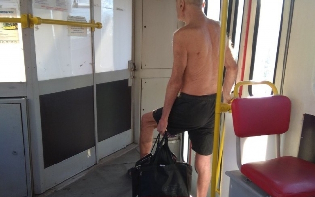 В Запорожье мужчина пожилого возраста проехался в трамвае практически голым, из одежды были только шорты. Соответствующее фото было опубликовано в местном паблике «Типичное Запорожье».