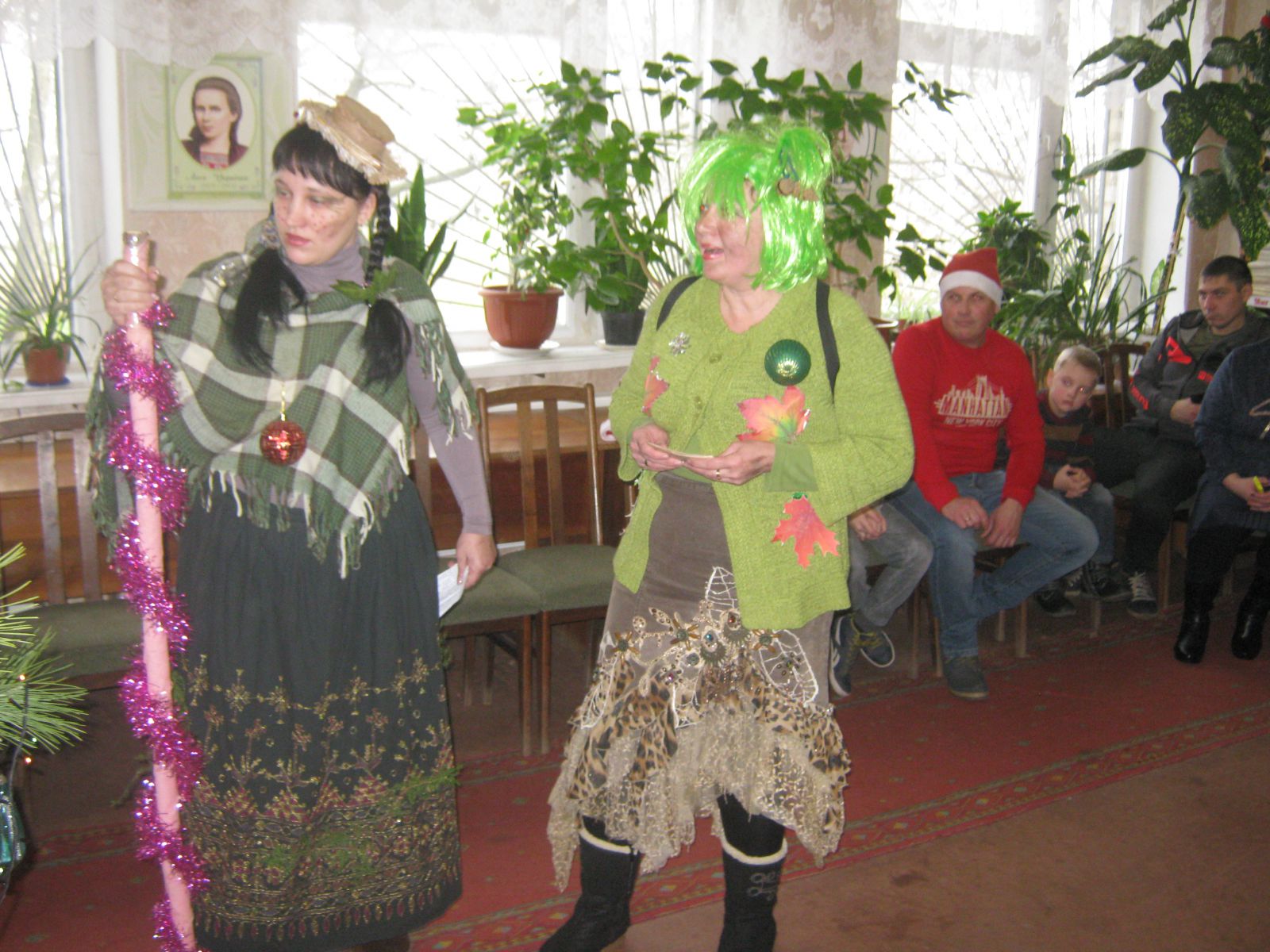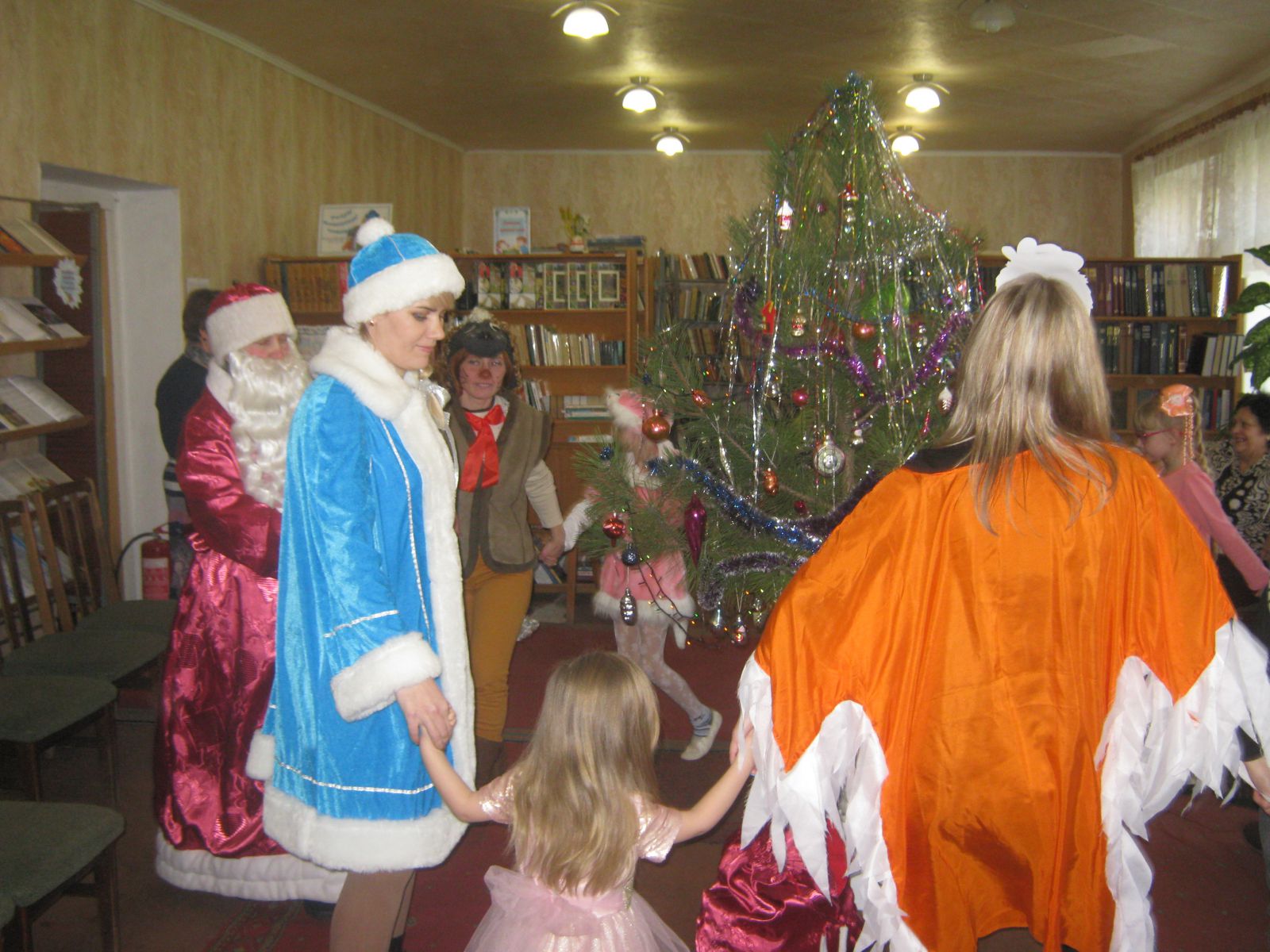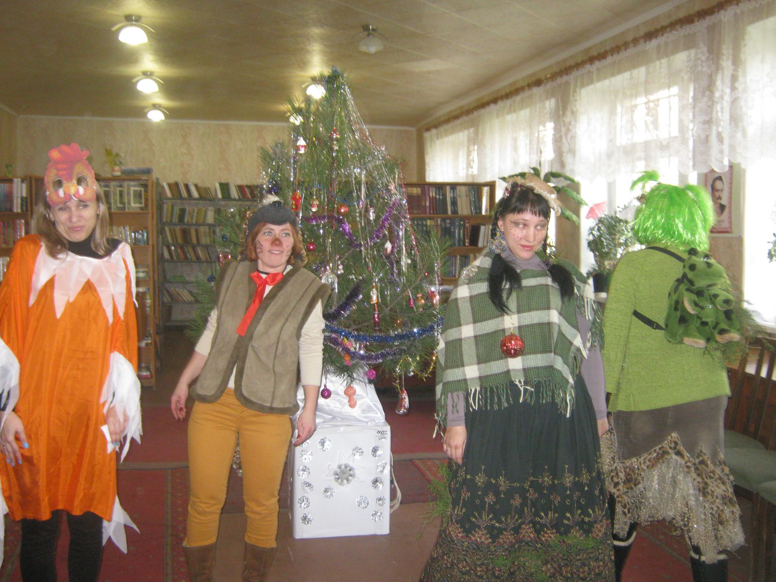 «Главными героями этого праздника были, конечно же, Дед Мороз, Снегурочка, а также веселые лесные девушки - Хаханька и Хиханька, сказочные герои Петушок и Собака. Все с удовольствием развлекались, водили хороводы вокруг библиотечной елки. Все участники новогоднего мероприятия читали стихи и пели песни, отвечали на вопросы новогодней викторины от Деда Мороза и Снегурочки, вместе со сказочными героями играли в развлекательные.