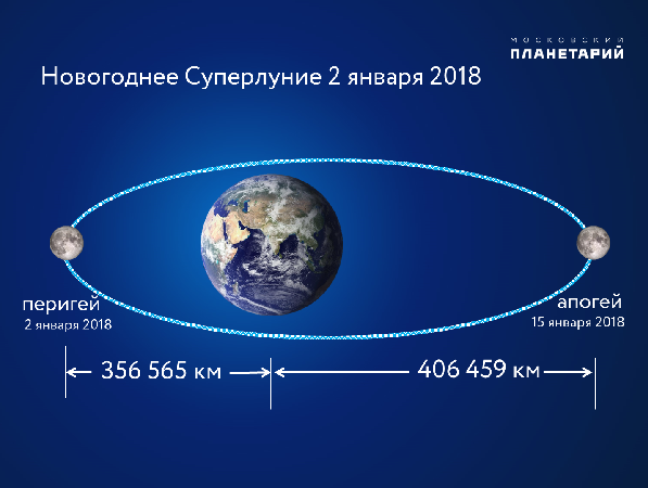 В ночь на 2 января 2018 года можно будет наблюдать редкое суперлуние. Разница между перигеем и полнолунием составит всего 4,5 часа.