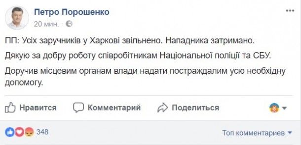 Все заложники в Харькове освобождены. Нападающий задержан.