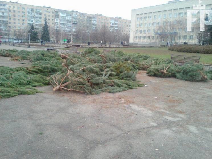 В Запорожье возле администрации городского совета продавцы оставили непроданные до 31 декабря ёлки прямо на площади. Соответствующее фото опубликовали в соцсети.