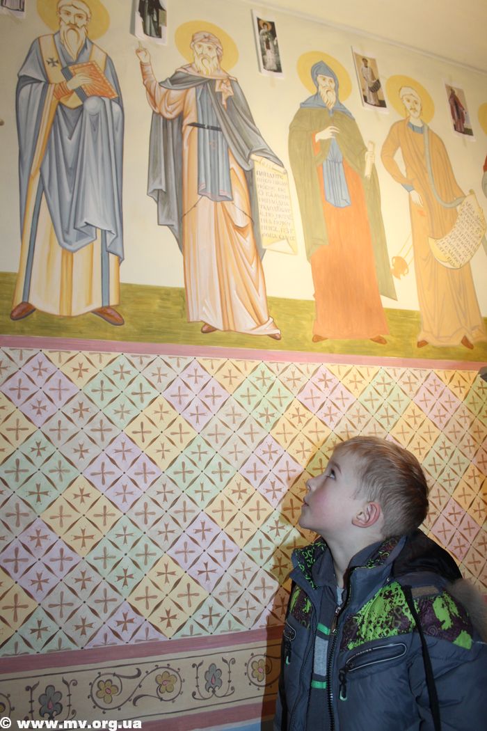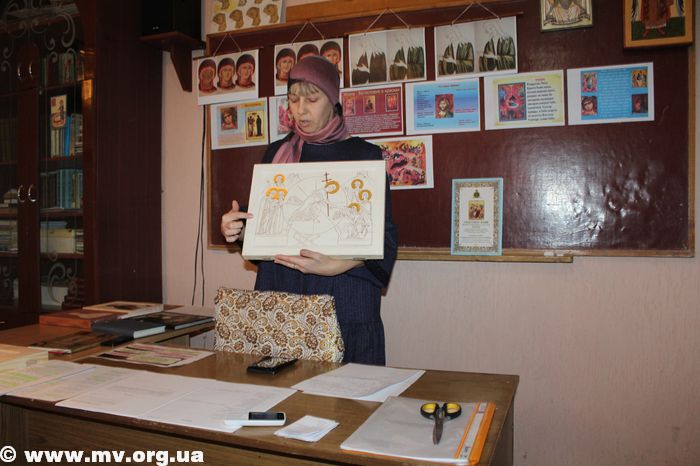 А. Евтушенко продемонстрировала этапы создания на примерах неоконченных икон. Алла Григорьевна также раскрыла символику иконы Рождества Христова. Собравшимся был предложен фильм о непростом пути превращения обычной доски в святой образ. Пройдя в храм Веры, Надежды, Любови и Софии, участники презентации рассмотрели росписи на стенах. Особенно заинтересовала их фреска «Страшный суд», расположенная на западной стене. После была экскурсия в иконописную мастерскую и дружеское чаепитие.