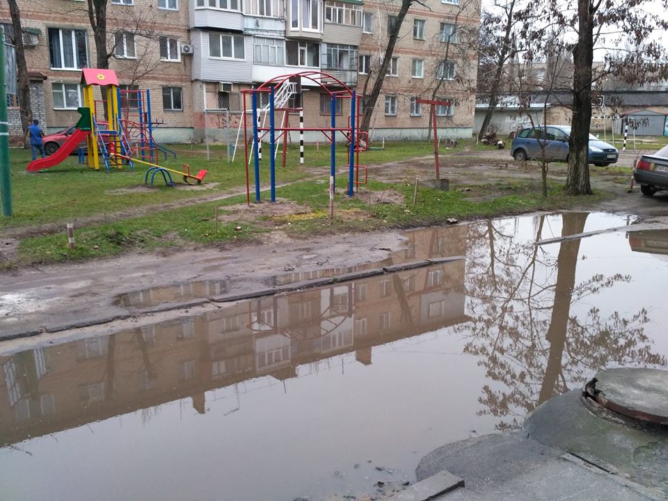 Благоустройство на сегодняшний день добралось не до всех дворов многоэтажного сектора в нашем городе. Так, на ул. И. Алексеева в некоторых дворах лужи собираются даже на футбольных площадках.