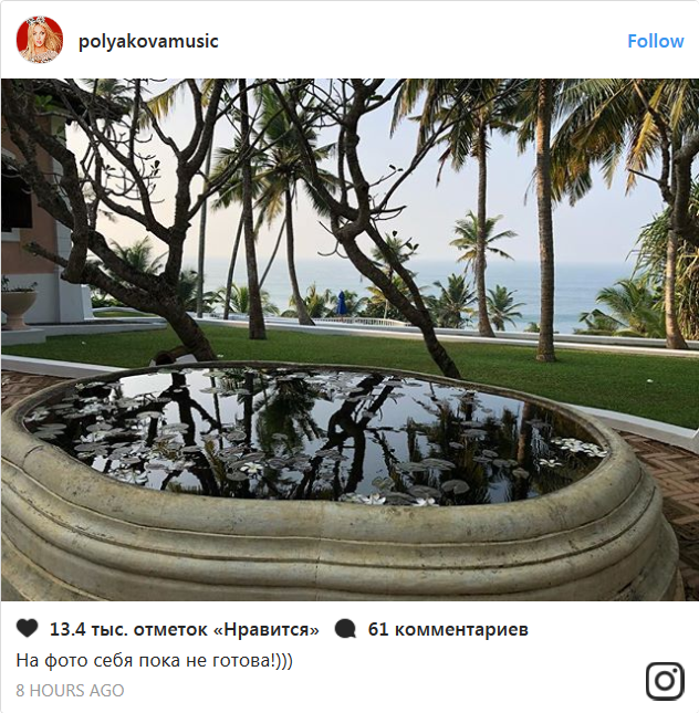 Сама исполнительница опубликовала снимок места отдыха в Instagram.