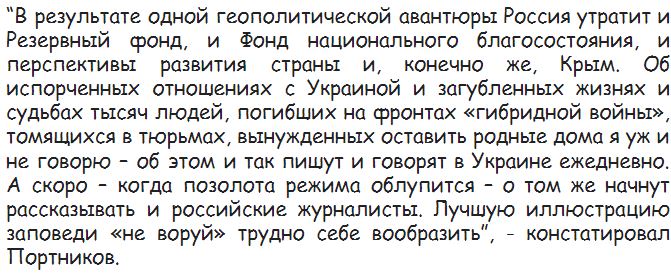 Когда и Фонд национального благосостояния РФ исчерпается, Кремлю не останется ничего другого, как торговать ворованными территориями. Крым станет для РФ товаром и в итоге вернется обязательно вернется в Украину, уверен Портников.