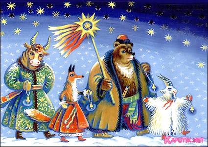 К примеру, обряд «вождения Козы» раньше представлял собой танец звероподобного существа (с маской козы на голове), ее «умирания» и «воскресения», которые обозначали круговорот времени, наступление Нового года и пробуждение природы. Аграрно-магическая направленность обходов с «Козой» ярко раскрывается в тексте песни, где рисуется картина будущего щедрого урожая: