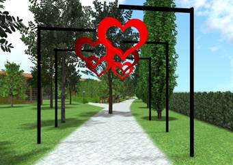 Проект предусматривает размещение у корпуса педвуза светильников в виде сердец и подземных светильников возле скамеек, установку декоративного трельяжа вокруг газораспределительной станции по ул. Героев Украины, высадку живой изгороди вдоль подпорной стены и многое другое.