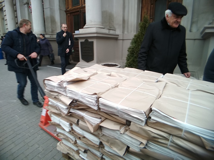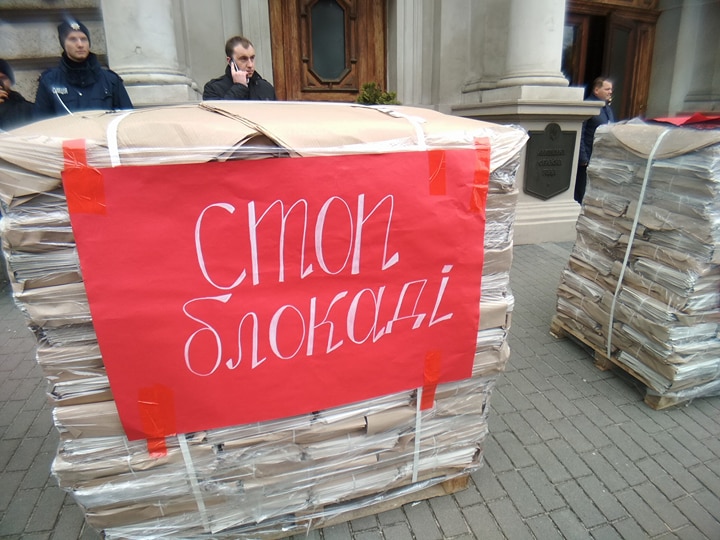 Журналисты возвели стену из газет под Львовской ОГА. ФОТО. ВИДЕО